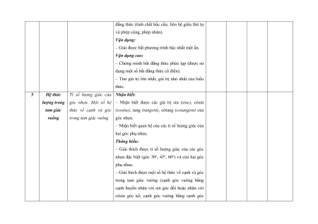 – Nhận biết quan hệ của các tỉ số lương giác của hai góc phụ nhau. Thông hiểu: