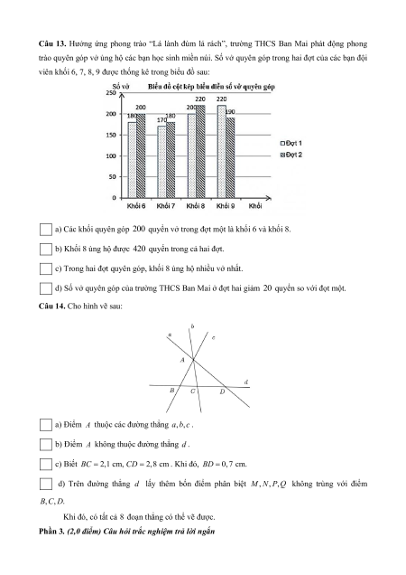 sinh chỉ lựa chọn chính xác 01 ý trong 1 câu được 0,1 điểm; 02 ý trong 1 câu được 0,25 điểm; 03 ý trong một câu được 0,5 điểm và chọn chính xác