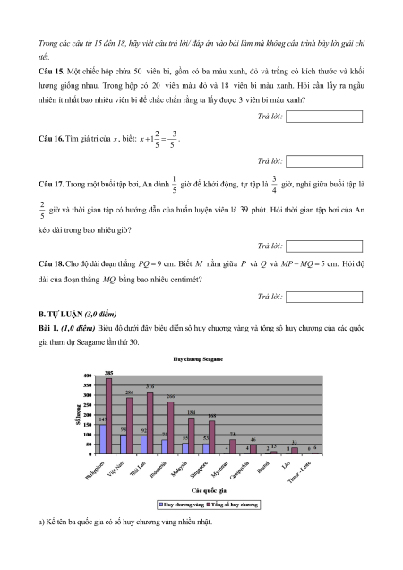 – Số điểm của câu tự luận được quy định trong hướng dẫn chấm nhưng phải tương ứng với tỉ lệ điểm được quy định trong ma trận.