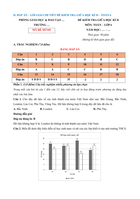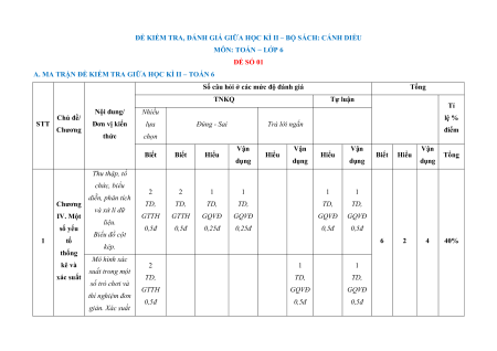 ĐỀ KIỂM TRA, ĐÁNH GIÁ GIỮA HỌC KÌ II – BỘ SÁCH: CÁNH DIỀU MÔN: TOÁN − LỚP 6 ĐỀ SỐ 01