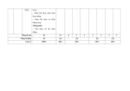 Tổng số điểm 3,0 2,0 2,0 3,0 4,0 3,0 3,0 10 Tỉ lệ % 30% 20% 20% 30% 40% 30% 30% 100% Lưu ý: