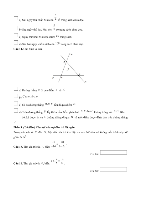 sinh chỉ lựa chọn chính xác 01 ý trong 1 câu được 0,1 điểm; 02 ý trong 1 câu được 0,25 điểm; 03 ý trong một câu được 0,5 điểm và chọn chính xác