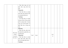 Số câu hỏi ở mức độ đánh giá Nội dung/ Chủ đề/ TNKQ Tự luận STT Đơn vị kiến Yêu cầu cần đạt chương Nhiều lựa chọn Đúng – Sai Trả lời ngắn thức Vận Vận Vận Biết Hiểu Biết Hiểu Hiểu Biết Hiểu dụng dụng dụng Nhận biết: