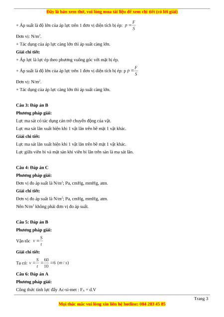 Câu 4 (NB): Đơn vị nào đây không phải là đơn vị đo áp suất? A. N/m2 B. Pa C. N/m3 D. cmHg.