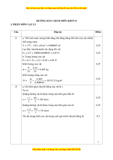 I. PHÂN MÔN VẬT LÍ Câu Đáp án Điểm 1