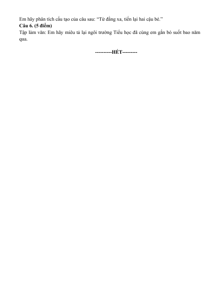 Em hãy phân tích cấu tạo của câu sau: “Từ đằng xa, tiến lại hai cậu bé.” Câu 6. (5 điểm)