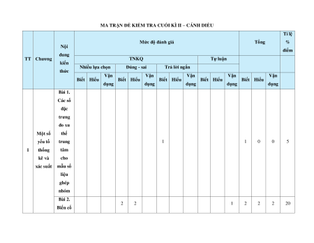 MA TRẬN ĐỀ KIỂM TRA CUỐI KÌ II – CÁNH DIỀU Tỉ lệ