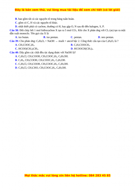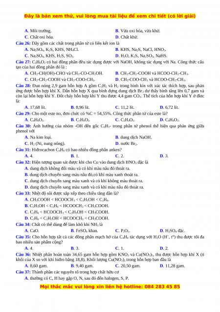 Câu 2: Cho tất cả các đồng phân mạch hở, có cùng công thức phân tử C2H4O2 lần lượt tác dụng với: Na,