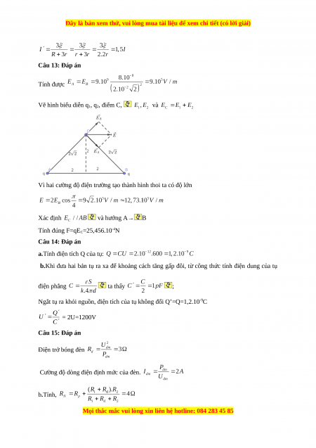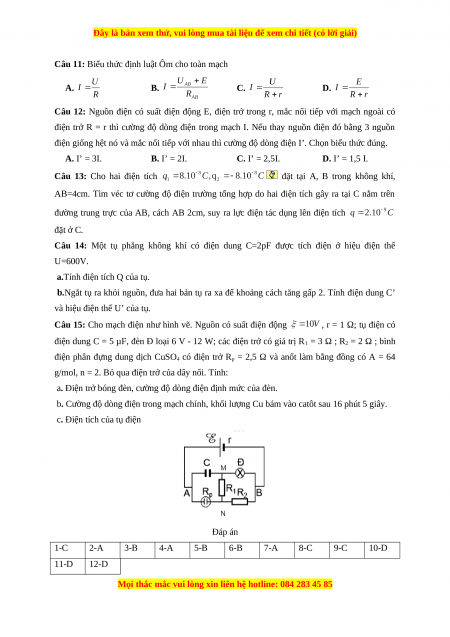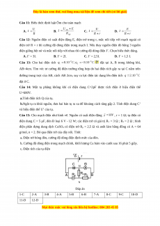 c. Điện tích của tụ điện Đáp án 1-C 2-A 3-B 4-A 5-B 6-B 7-A 8-C 9-C 10-D 11-D 12-D