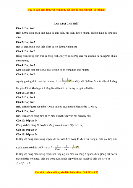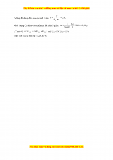 Câu 1: Hiện tượng điện phân không ứng dụng để A. đúc điện. B. mạ điện. C. sơn tĩnh điện. D. luyện nhôm.