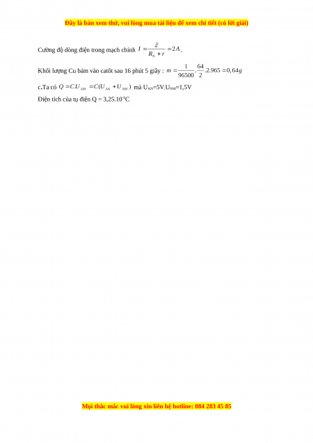 điện phân đựng dung dịch CuSO4 có điện trở Rp = 2,5 Ω và anốt làm bằng đồng có A = 64