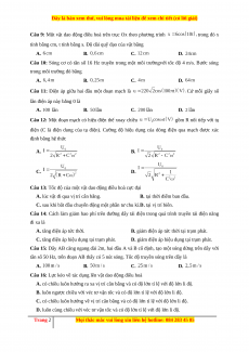 Câu 10: Sóng cơ có tần sổ 16 Hz truyền trong một môi trườngvới tốc độ 4 m/s. Bước sóng