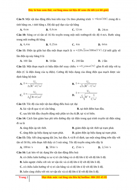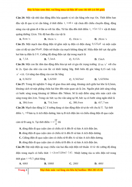 Đây là bản xem thử, vui lòng mua tài liệu để xem chi tiết (có lời giải)
