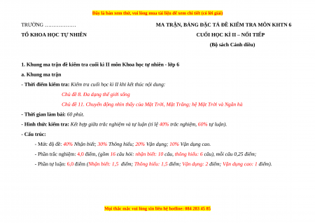 1. Khung ma trận đề kiểm tra cuối kì II môn Khoa học tự nhiên - lớp 6