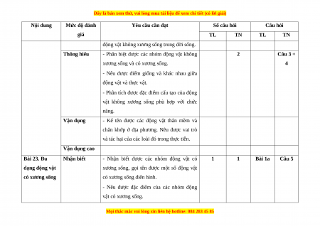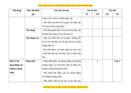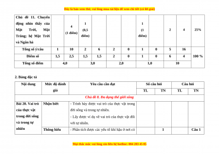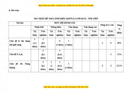 1. Khung ma trận đề kiểm tra cuối kì II môn Khoa học tự nhiên - lớp 6 a. Khung ma trận