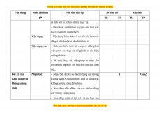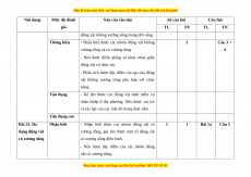 Trăng; hệ Mặt Trời điểm) điểm) và Ngân hà Tổng số ý/câu 1 10 2 6 2 0 1 0 5 16 Điểm số 1,5 2,5 1,5 1,5 2 0 1 0 6 4 100 % Tổng số điểm 4,0 3,0 2,0 1,0 10 2. Bảng đặc tả Nội dung Mức độ đánh Yêu cầu cần đạt Số câu hỏi Câu hỏi giá TL TN TL TN