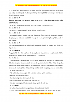 Câu 12: Năm 2004, GDP của Ac-hen-ti-na là 151,5 tỉ USD, với tổng số nợ nước ngoài là 158,0