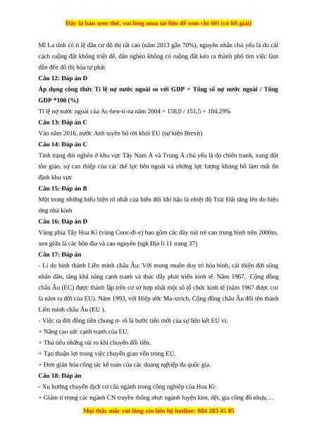 Vẽ biểu đồ thể hiện tốc độ tăng trưởng GDP của Mĩ La Tinh giai đoạn 1985- 2004. Nhận xét và giải thích. Đáp án 1-C 2-D 3-D 4-B 5-A 6-A 7-C 8-B 9-A 10-B 11-A 12-D 13-C 14-C 15-B 16-D LỜI GIẢI CHI TIẾT