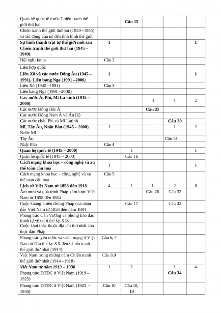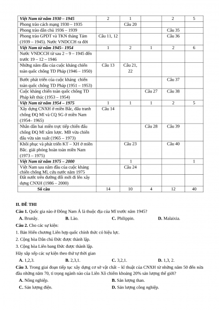 Đất nước trên đường đổi mới đi lên xây dựng CNXH (1986 – 2000) Số câu 14 10 4 12 40 II. ĐỀ THI