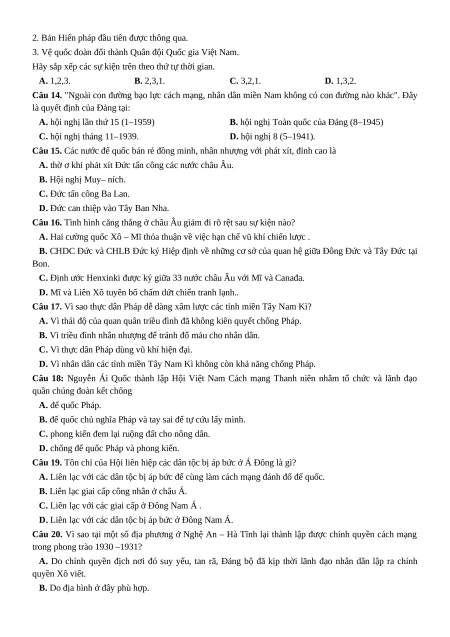 Phong trào GPDT và TKN tháng Tám Câu 11, 12 Câu 36