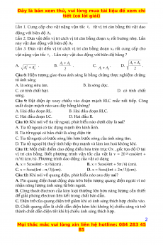 ượ giao thoa ánh sáng là b ng ằ ch ng ứ th c ự nghi m ệ ch ng ứ t ỏ ánh sáng A. là sóng siêu âm. B. là sóng d c. ọ C. có tính ch t ấ h t. ạ D. có tính ch t ấ sóng. Câu 9: Đ t ặ đi n ệ áp xoay chi u ề vào đo n ạ m ch ạ RLC m c ắ n i ố ti p ế . Công su t ấ đo n ạ m ch ạ nào sau đây b ng ằ không? A. Hai đ u ầ đo n ạ RL. B. Hai đ u ầ đo n ạ RLC. C. Hai đ u ầ đo n ạ LC. D. Hai đ u ầ R. Câu 10: Khi nói v ề tia t ử ngo i, ạ phát bi u ể nào d i ướ đây là sai? A. Tia t ử ngoại có tác d ng ụ m nh ạ lên kính nh. ả B. Tia t ử ngoại có b n ả ch t ấ là sóng đi n ệ t . ừ C. Tia t ử ngoại có b c ướ sóng l n ớ h n ơ b c ướ sóng c a ủ ánh sáng tím. D. Tia t ử ngoại b ịthu ỷ tinh h p ấ th ụ m nh ạ