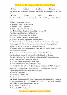 Câu 6: Một base nito của gen trở thành dạng hiếm thì qua quá trình nhân đôi của ADN