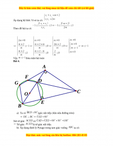 Áp dụng hệ thức Vi-et ta có: Theo đề bài ta có: Vậy thỏa mãn bài toán Bài 4. A F G D O C E B a) Ta có