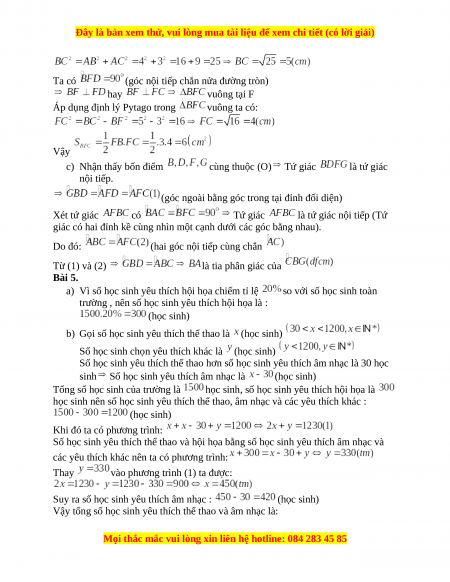 Bài 5. (1,0 điểm) Trường A tiến hành khảo sát 1500 học sinh về sự yêu thích hội