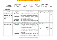 Tên bài M C Ứ Đ Đ Ộ ÁNH GIÁ T ng % ổ T ng s ổ ố ý/ câu Nhận bi t ế Thông hi u ể V n d ậ ng ụ Vận d ng cao ụ đi m ể TL TN TL TN TL TN TL TN TL TN Bài 1. Phư ng ơ pháp và 1 1 kĩ năng h c ọ t p ậ môn (0,25 (0,25 2,5 khoa h c ọ t nhi ự ên đi m ể ) đi m ể ) Chư ng ơ I. Nguyên t . ử 1 2 1 2 3 ý 3 Sơ lư c ợ về b ng ả tu n ầ (0,5 (0,5 (0,25 (1 (1,5 (0,75 22,5