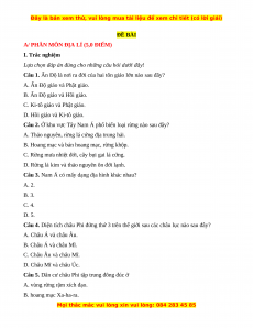 A/ PHÂN MÔN ĐỊA LÍ (5,0 ĐIỂM) I. Trắc nghiệm