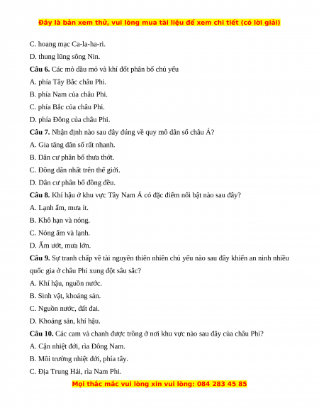 Câu 6. Các mỏ dầu mỏ và khí đốt phân bố chủ yếu A. phía Tây Bắc châu Phi. B. phía Nam của châu Phi.