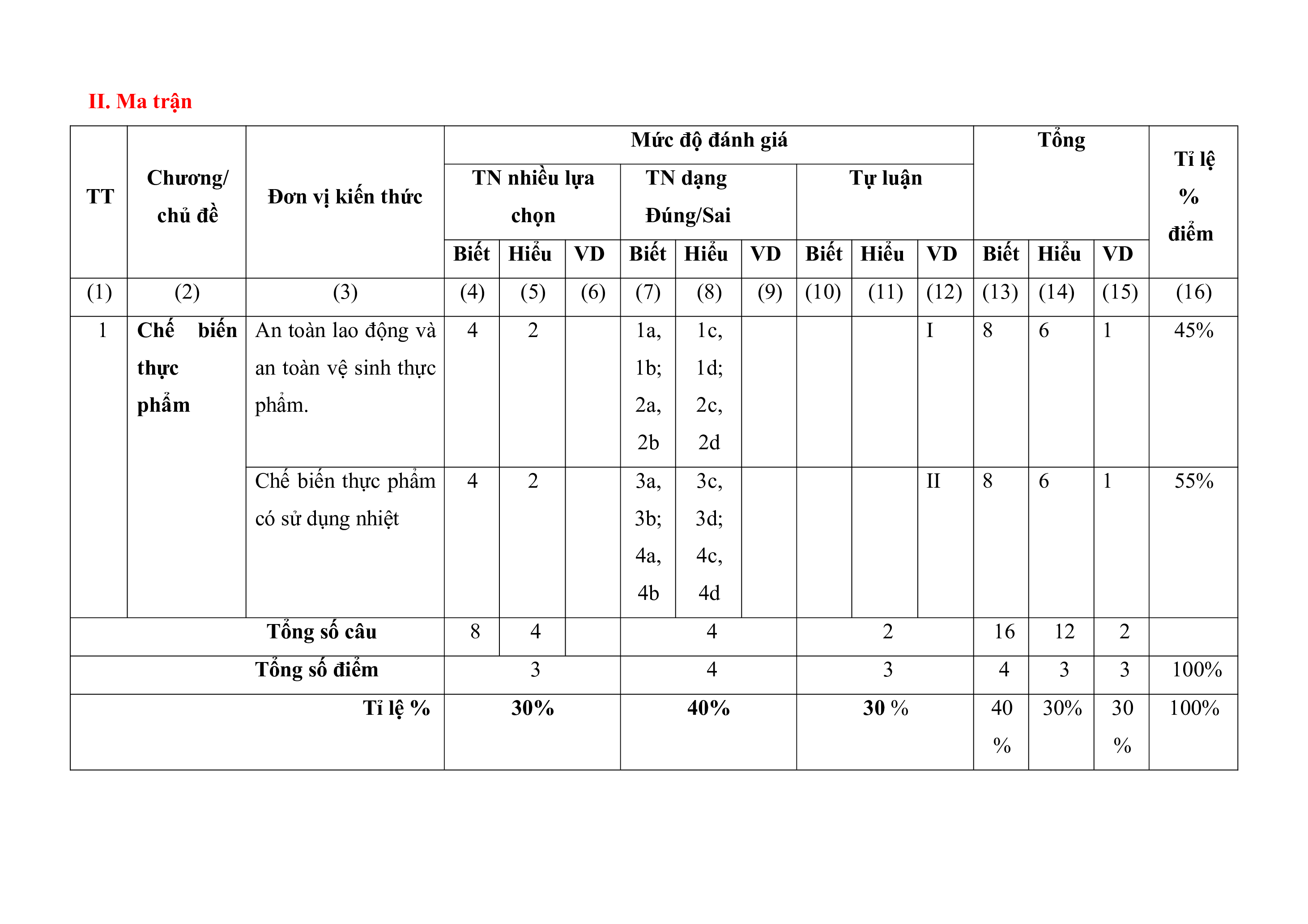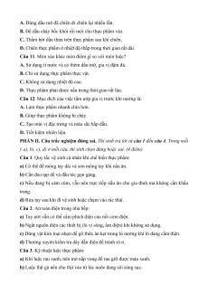 1 Chế biến An toàn lao động và 4 2 1a, 1c, I 8 6 1 45% thực an toàn vệ sinh thực 1b; 1d; phẩm phẩm. 2a, 2c, 2b 2d Chế biến thực phẩm 4 2 3a, 3c, II 8 6 1 55% có sử dụng nhiệt 3b; 3d; 4a, 4c, 4b 4d Tổng số câu 8 4 4 2 16 12 2 Tổng số điểm 3 4 3 4 3 3 100% Tỉ lệ % 30% 40% 30 % 40 30% 30 100% % % III. Đề kiểm tra Sở GD- ĐT …
