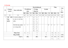 - Tự luận: Gồm 2 - 3 câu. II. Ma trận Mức độ đánh giá Tổng Tỉ lệ Chương/ TN nhiều lựa TN dạng Tự luận TT Đơn vi kiến thức % chủ đề chọn Đúng/Sai điểm
