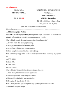 ĐỀ KIỂM TRA GIỮA HỌC KÌ II TRƯỜNG THPT … Năm học:…. Môn: Công nghệ 9 Mã đề thi: 001