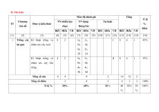 - Tự luận: Gồm 2 - 3 câu. II. Ma trận Mức độ đánh giá Tổng Tỉ lệ Chương/ TN nhiều lựa TN dạng Tự luận TT Đơn vi kiến thức % chủ đề chọn Đúng/Sai điểm