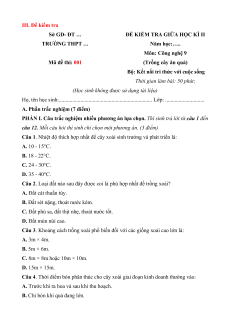 1 Trồng cây Kĩ thuật trồng và 4 2 1a, 1c, I 8 6 1 45% ăn quả chăm sóc cây xoài 1b; 1d; 2a, 2c, 2b 2d Kĩ thuật trồng và 4 2 3a, 3c, II 8 6 1 55% chăm sóc cây sầu 3b; 3d; riêng 4a, 4c, 4b 4d Tổng số câu 8 4 4 2 16 12 2 Tổng số điểm 3 4 3 4 3 3 100% Tỉ lệ % 30% 40% 30 % 40 30% 30 100% % % III. Đề kiểm tra Sở GD- ĐT …