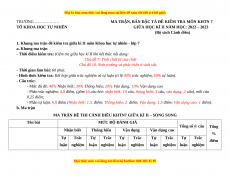 MA TRẬN, BẢN ĐẶC TẢ ĐỀ KIỂM TRA MÔN KHTN 7