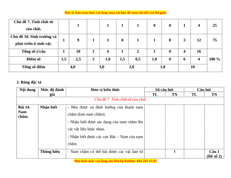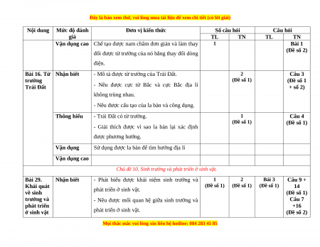1. Khung ma trận đề kiểm tra giữa kì II môn Khoa học tự nhiên - lớp 7 a. Khung ma trận