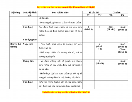 Đơn vị kiến thức Số câu hỏi Câu hỏi giá TL TN TL TN vật liệu từ.