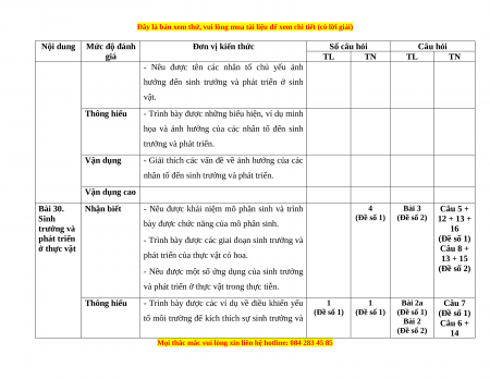 - Phát biểu được khái niệm sinh trưởng và 1 2 Bài 3 Câu 9 + Khái quát (Đề số 1) (Đề số 1) (Đề số 1) 14 phát triển ở sinh vật. về sinh (Đề số 1) trưởng và