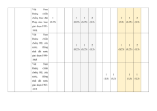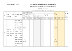 đề/ Nội dung kiến Trắc nghiệm khách quan Tổng STT Tự luận % chương thức Nhiều lựa chọn Đúng - sai điểm Biết Hiểu VD Biết Hiểu VD Biết Hiểu VD Biết Hiểu VD Xây dựng và bảo vệ chính quyền nước Việt Nam dân 1 1 chủ Cộng hòa (0,25) (0,25) Chương 4. (từ tháng Việt Nam từ 9/1945 đến 1