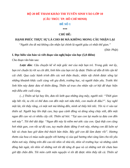 Bộ 20 Đề tham khảo thi vào lớp 10 Văn Tp.HCM 2025-2026