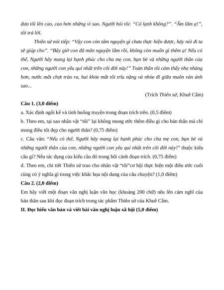 (Trích Thiên sứ, Khuê Cẩm) Câu 1. (3,0 điểm)