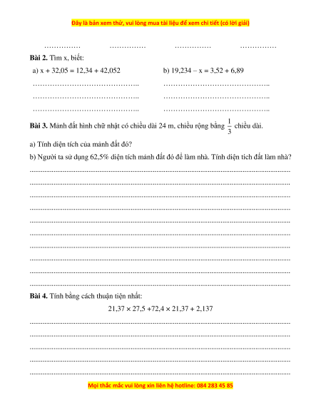 Bài 2. Tìm x, biết: a) x + 32,05 = 12,34 + 42,052 b) 19,234 – x = 3,52 + 6,89