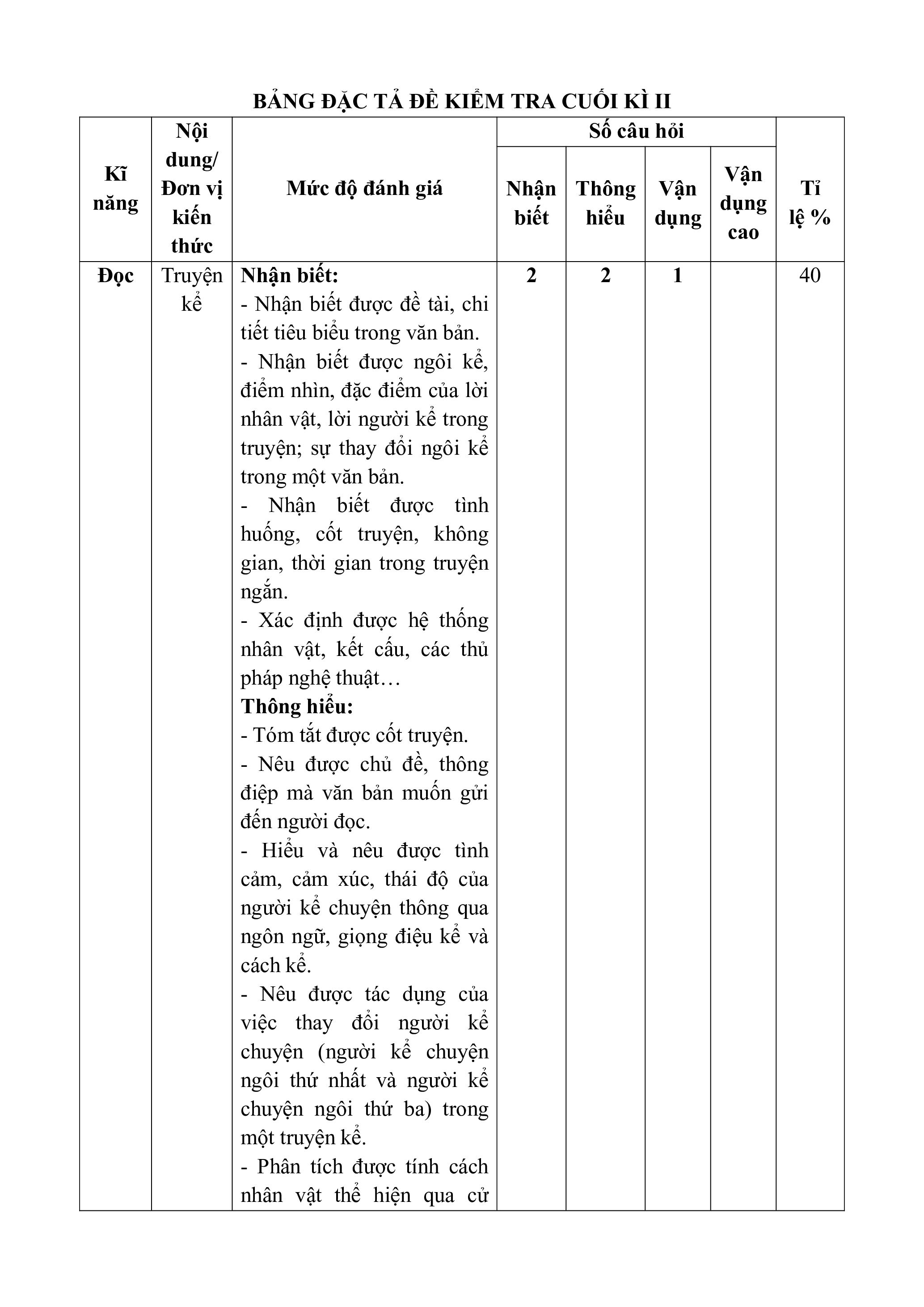 MA TRẬN ĐỀ KIỂM TRA CUỐI HỌC KÌ II