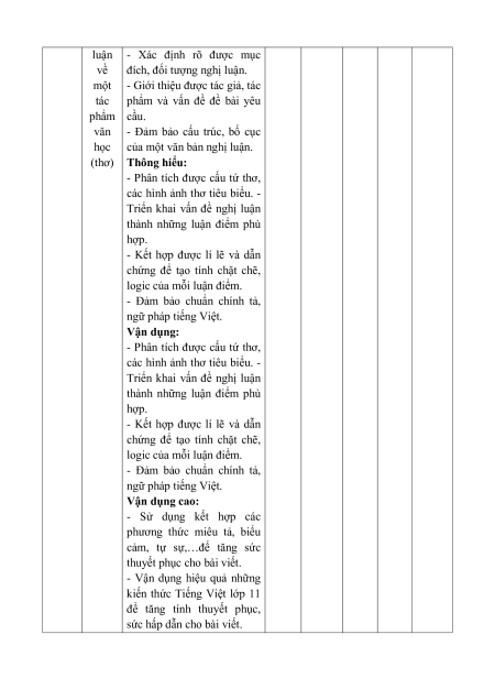 của một văn bản nghị luận. (thơ) Thông hiểu: