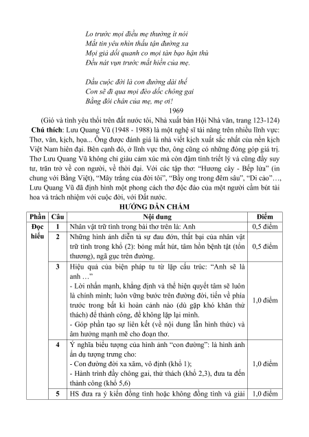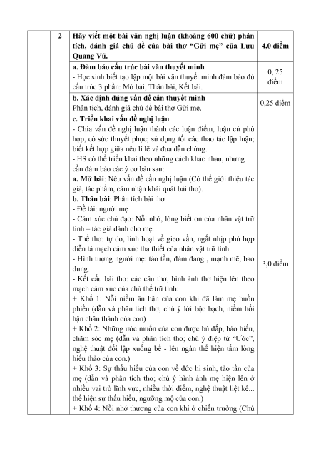 Nội dung/ đơn vị kĩ năng Tổng % Vận điểm Biết Hiểu Vận dụng dụng cao TL TL TL TL Đọc hiểu Thơ 2 2 1 40