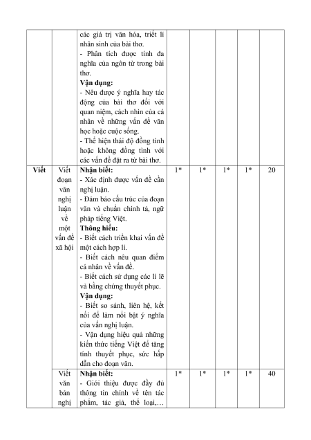tính thuyết phục, sức hấp dẫn cho đoạn văn. Viết Nhận biết: 1* 1* 1* 1* 40 văn