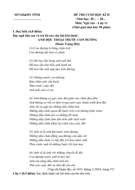 - Tailieugiaovien.com.vn giới thiệu bộ 20 đề cuối kì 2 gồm đầy đủ ma trận và lời giải chi tiết Ngữ văn 11 Kết nối tri thức Cấu trúc mới nhằm giúp Giáo viên có thêm tài liệu tham khảo ra đề thi Ngữ văn lớp 11.