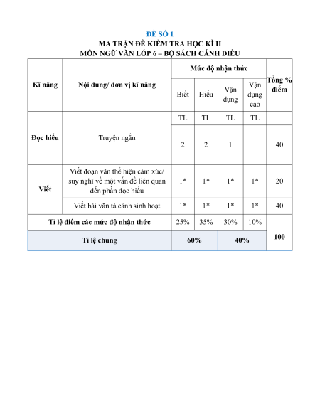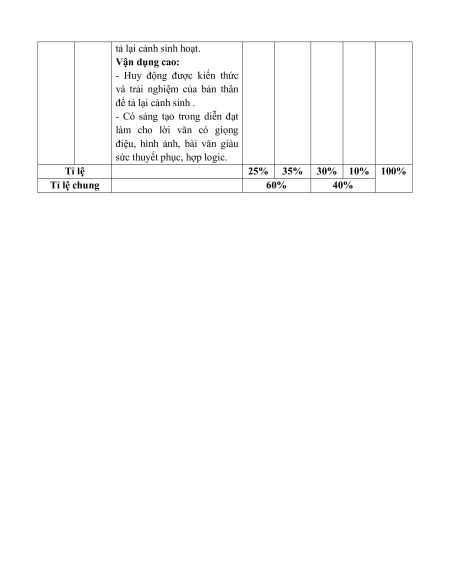 Tỉ lệ điểm các mức độ nhận thức 25% 35% 30% 10% 100 Tỉ lệ chung 60% 40%